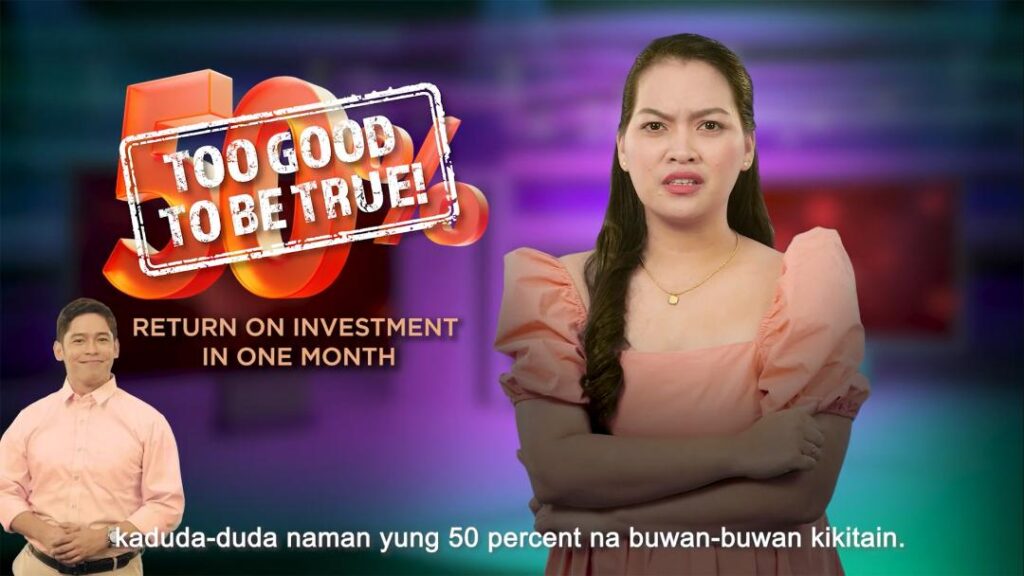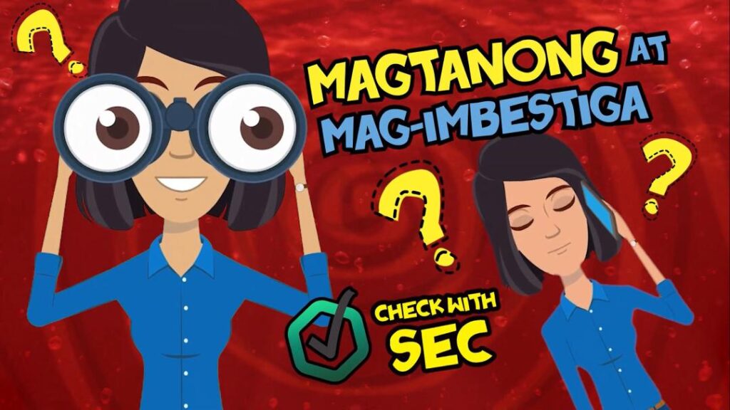 There are many ways to spot investment red flags. One is to ask the right questions and listen to and study the answers. The music video “Check with SEC” listed examples: promising an easy “double your investment” (or more) monthly income, requiring one to recruit other investors for bonuses, and the need to deposit investment in the agent’s personal bank account to facilitate the process, among many others.