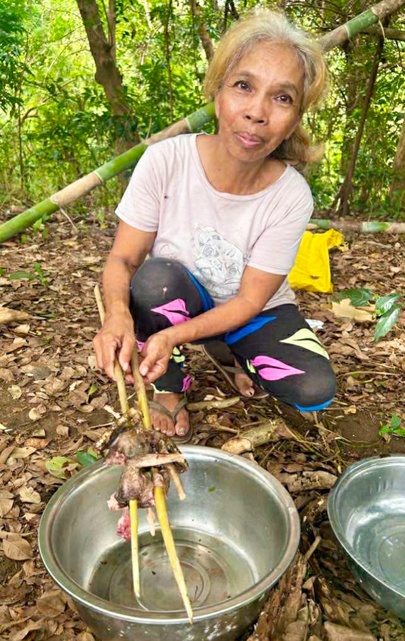 Ambala Catalina Soriano shows off a local bird (pagitik) her team prepared for a