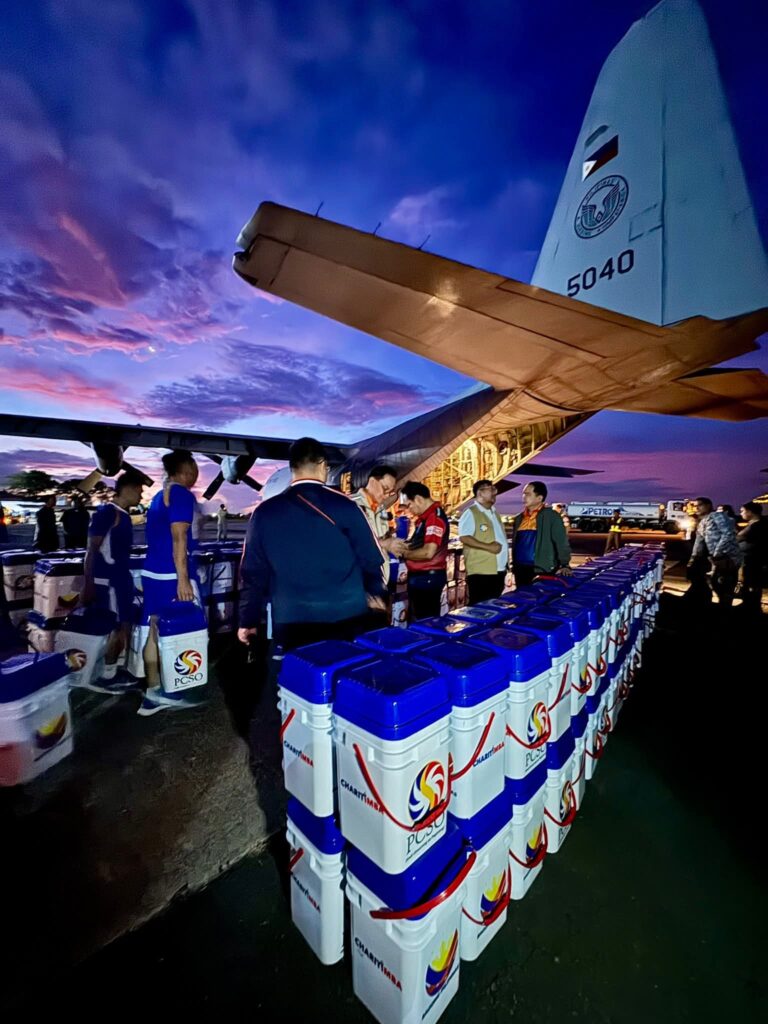 The Philippine Charity Sweepstakes Office (PCSO), in collaboration with the GMA Kapuso Foundation and supported by the Philippine Air Force, dispatched much-needed humanitarian aid via C-130 aircraft from Villamor Air Base at about 3 a.m.