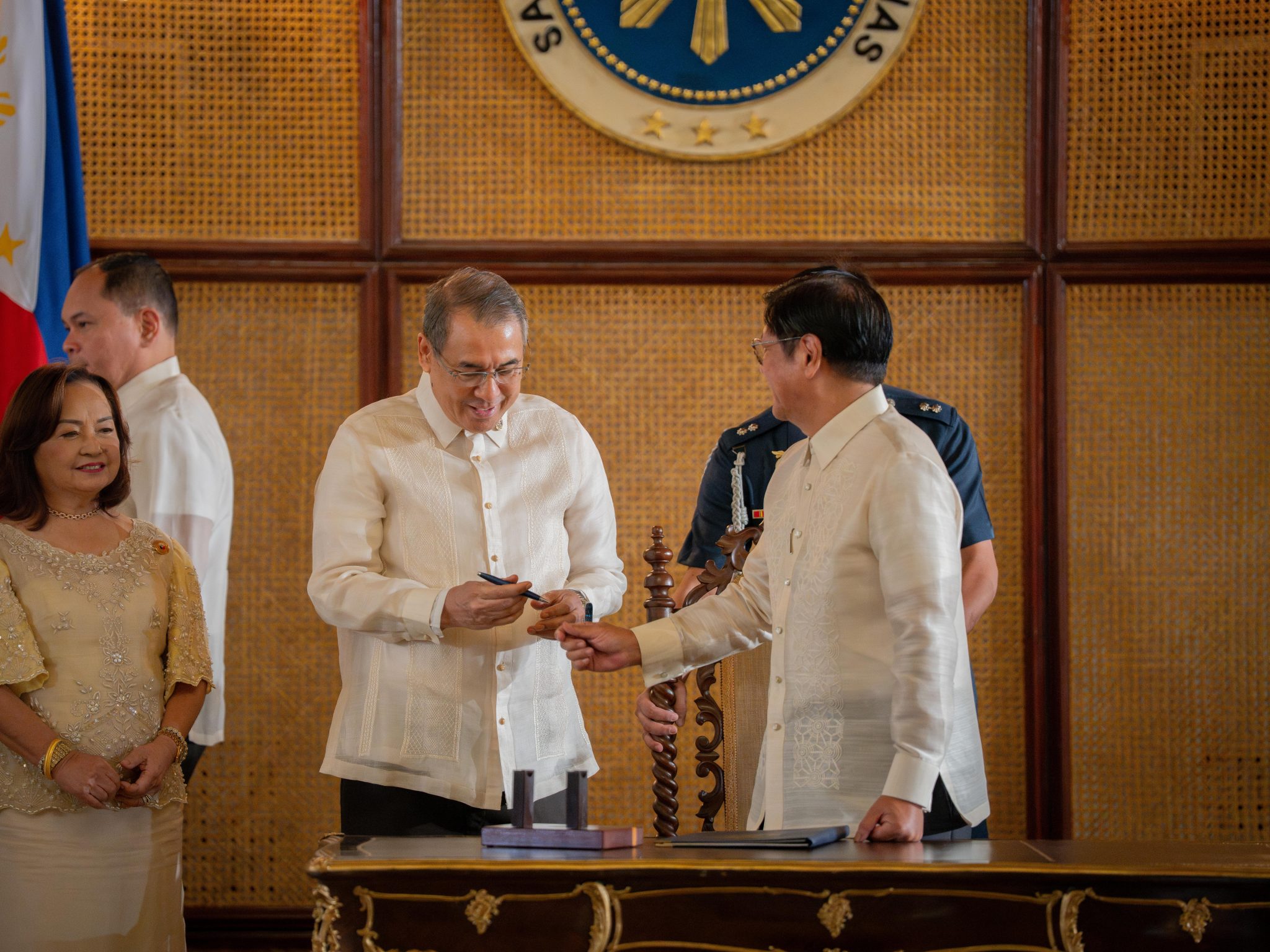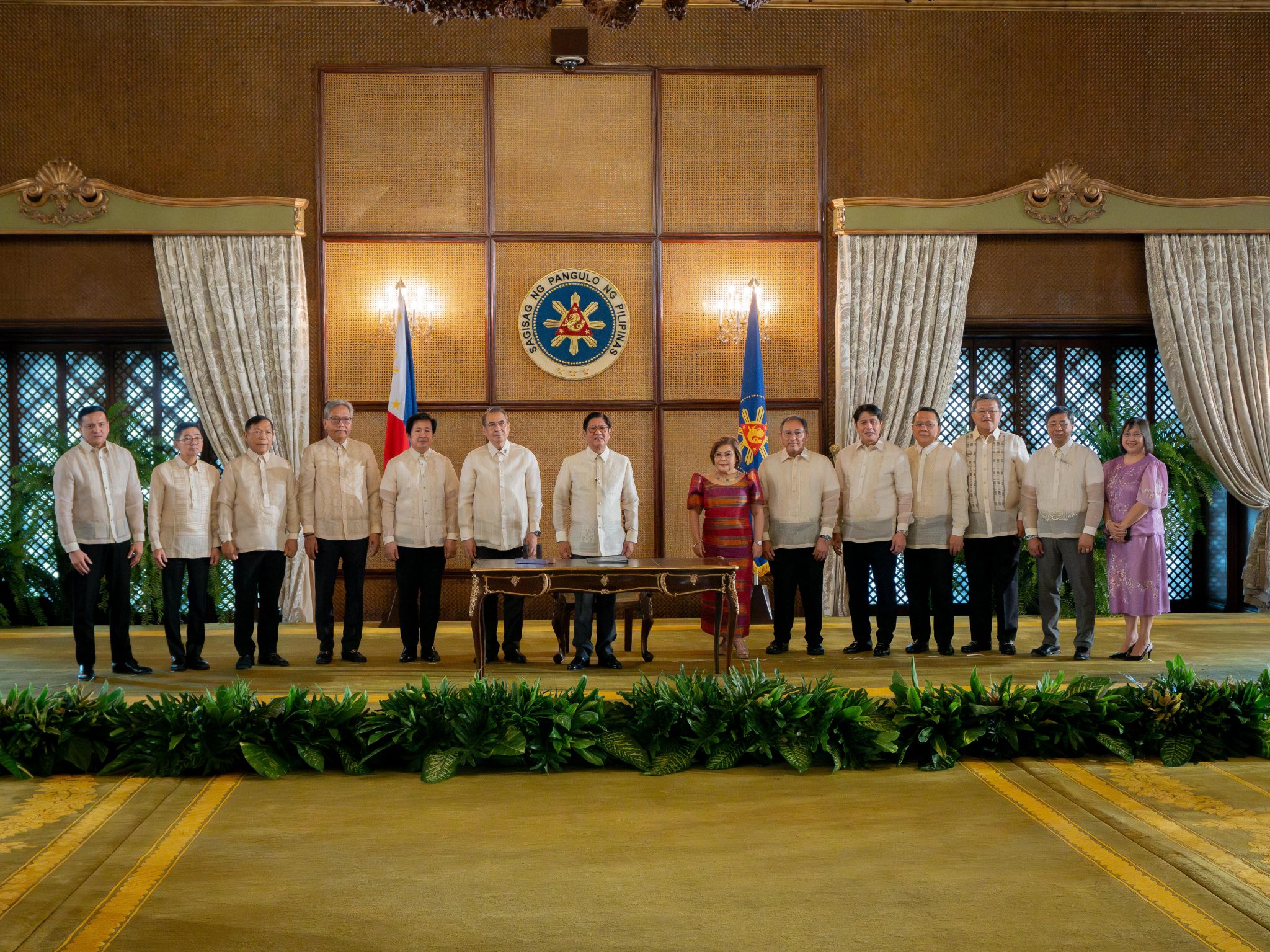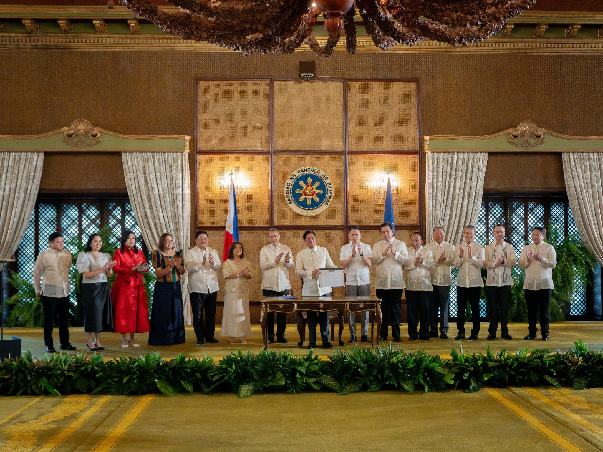 President Ferdinand R. Marcos Jr. led the signing ceremony at the Malacañan Palace, together with Senate President Francis G. Escudero and House Speaker Ferdinand Martin G. Romualdez. Also present were Senators Joel Villanueva and Alan Peter S. Cayetano; Representatives Gloria Macapagal-Arroyo, David C. Suarez, Janette L. Garin, Marcelino C. Libanan, Gerville R. Luistro, and Ysabel Maria J. Zamora; Executive Secretary Lucas P. Bersamin; Commission on Audit Chairperson Gamaliel A. Cordoba; and Presidential Legislative Liaison Office Head Undersecretary Adrian Carlos A. Bersamin.